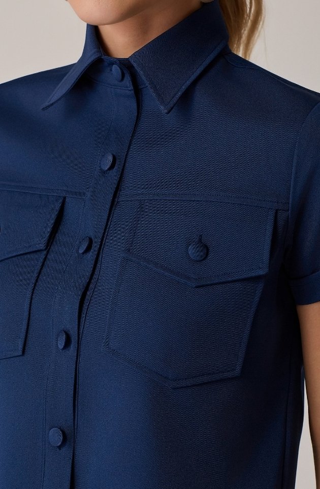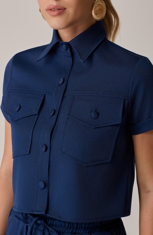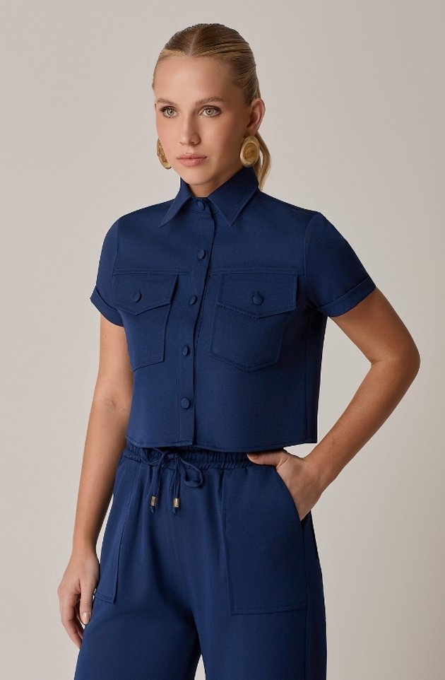 A Camisa Cropped LECLOÁ traz a força da alfaiataria para um visual moderno e descomplicado. Com comprimento mais curto, gola clássica e botões dourados aparentes, valoriza produções elegantes com um toque contemporâneo. Os bolsos frontais com lapela reforçam a estética utilitária, enquanto as mangas dobradas finalizam o look com sofisticação e leveza.