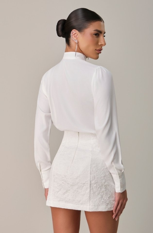 A Camisa Pétala é a expressão perfeita da sofisticação moderna. Sua máxi pétala frontal, construída em corte preciso e caimento estruturado, adiciona um toque que transforma a peça em um ícone de estilo. Confeccionada em mousseline texturizado, ela combina delicadeza, modernidade e presença — ideal para profissionais que prezam por uma imagem marcante e refinada.