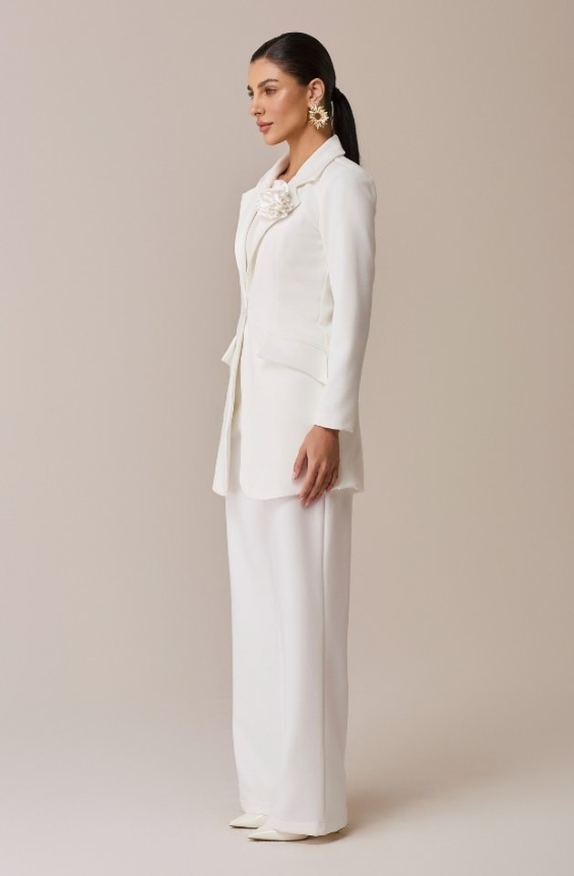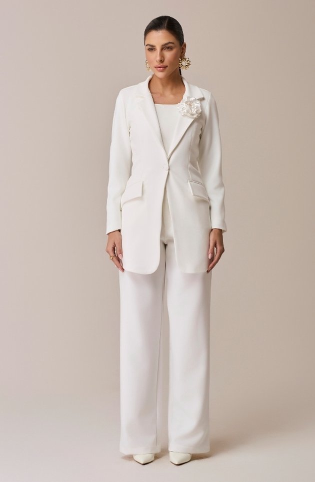 O Jaleco Leonora combina elegância e estrutura em uma proposta versátil que transita facilmente entre o look profissional e produções com toque fashion. Confeccionado em alfaiataria de gramatura encorpada, possui modelagem acinturada que valoriza a silhueta, fechamento com botões forrados e acabamento impecável. Acompanha um delicado broche de flor acetinada, que adiciona charme e personalidade à peça. Um jaleco que também pode ser usado como maxi blazer, unindo sofisticação e estilo com leveza.