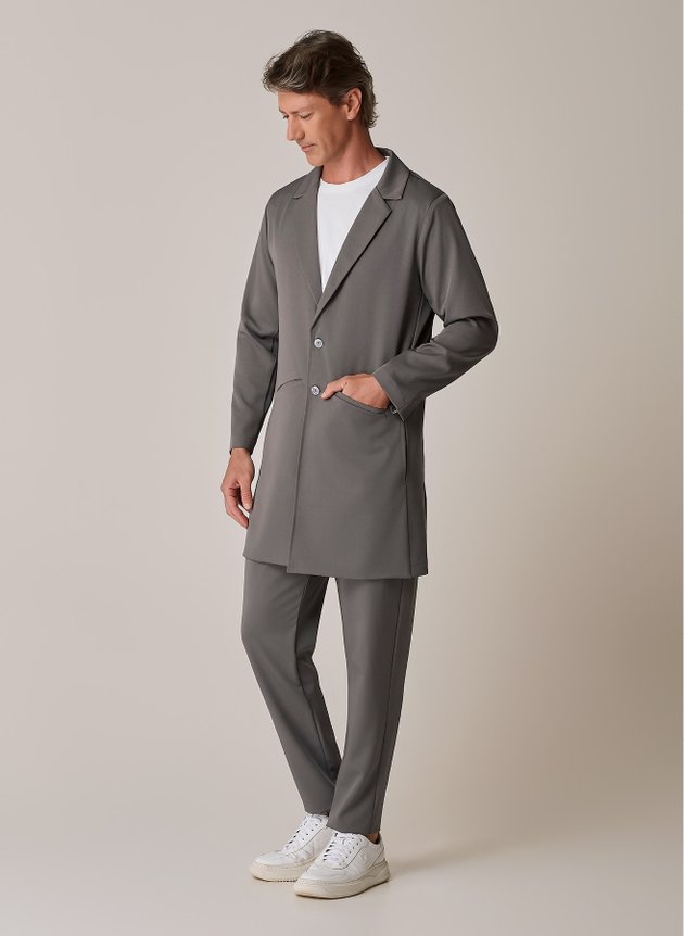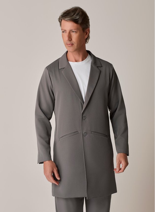 O Jaleco Masculino Clinic une o corte preciso da alfaiataria à funcionalidade que o dia a dia exige. Com modelagem reta e caimento impecável, a peça garante conforto e liberdade de movimento sem abrir mão da elegância. As lapelas clássicas e o fechamento por botões frontais reforçam o visual contemporâneo, enquanto os bolsos laterais trazem praticidade. Ideal para profissionais que valorizam uma imagem moderna e refinada.