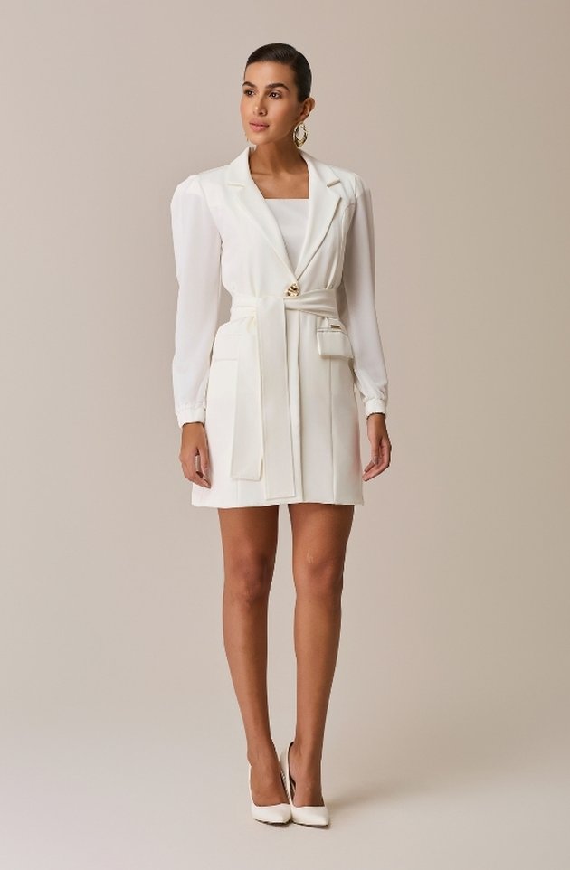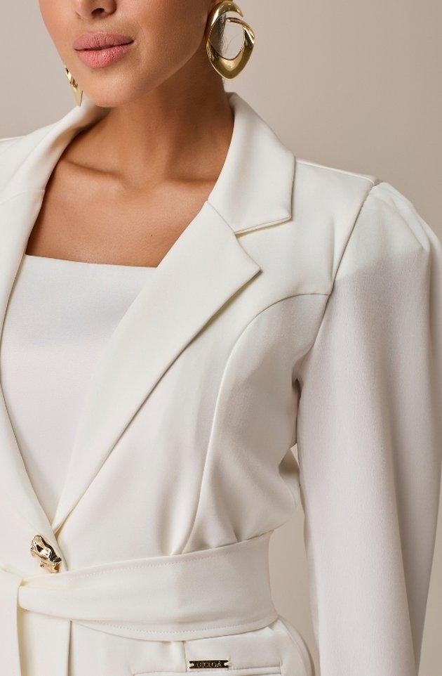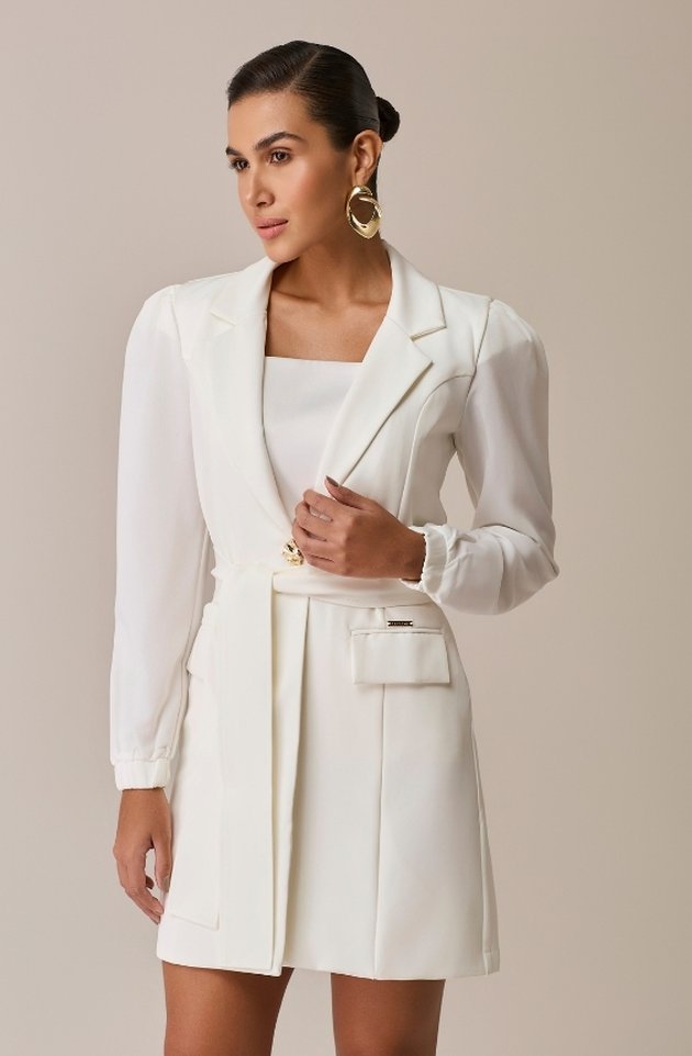 O Jaleco Paola é uma releitura moderna e estilosa do clássico jaleco profissional. Confeccionado em crepe de alfaiataria com detalhes em crepe musseline, une leveza e sofisticação em uma proposta fashionista. Suas mangas 7/8 com punhos em elástico trazem movimento e charme contemporâneo, enquanto o bolso com lapela e a faixa para amarração marcam a silhueta com delicadeza. O botão dourado em formato de pétala é o toque final que transforma a peça em um verdadeiro ícone de estilo.