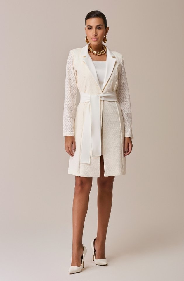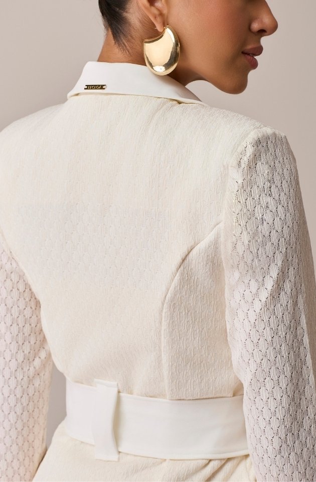 Com uma proposta delicada e imponente ao mesmo tempo, o Jaleco Yohana é confeccionado em alfaiataria com renda sobreposta, criando um visual sofisticado e atemporal. Possui mangas longas, gola slim e ombreiras que estruturam a silhueta com sutileza. Acompanha faixa de cintura que valoriza o corpo e reforça a feminilidade da peça. Uma escolha elegante para profissionais que desejam transmitir excelência com suavidade e presença.