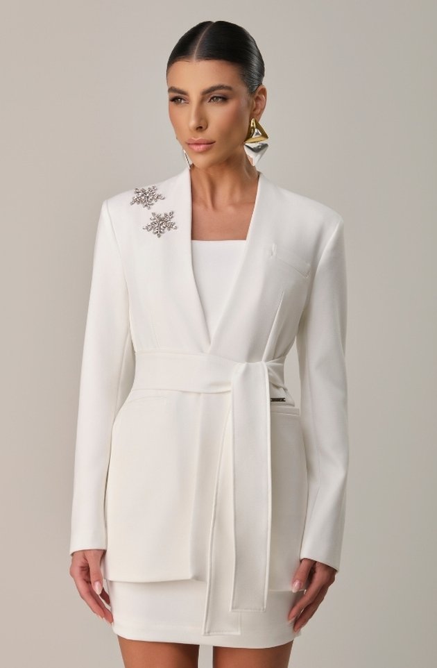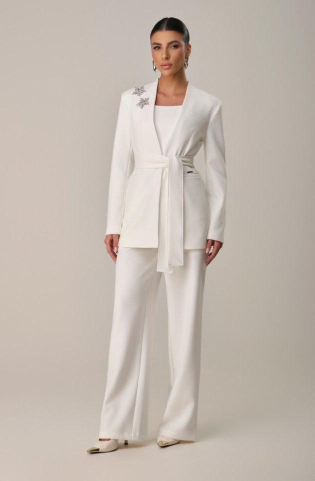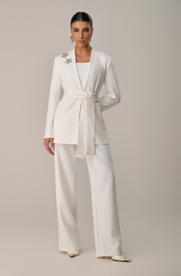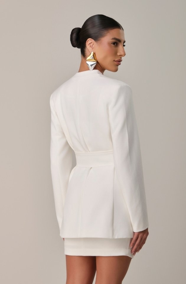 O Máxi Blazer Athena é a peça que traduz sofisticação em sua forma mais autêntica. Sua modelagem alongada valoriza a silhueta, enquanto a faixa na cintura permite diferentes amarrações, proporcionando ajuste perfeito e imponência ao look. O detalhe em pedraria aplicado próximo ao ombro adiciona um toque de brilho delicado, elevando a peça a um patamar de exclusividade. Sem gola, apresenta linhas minimalistas e modernas, ideais para composições elegantes e atemporais.