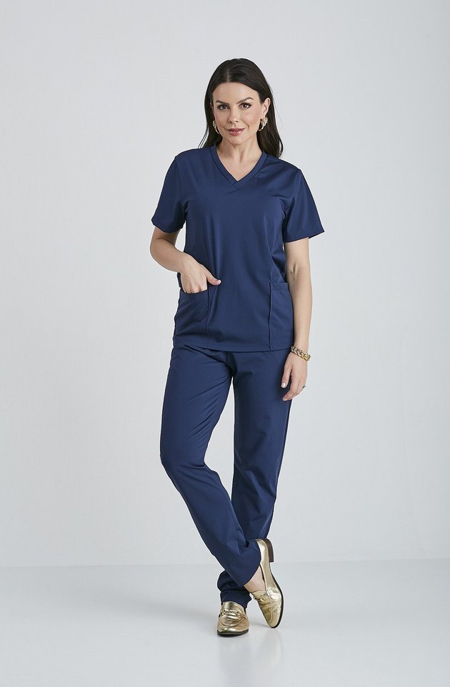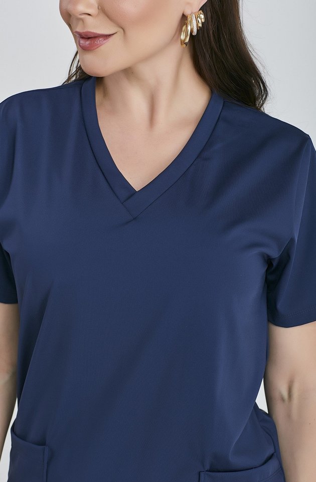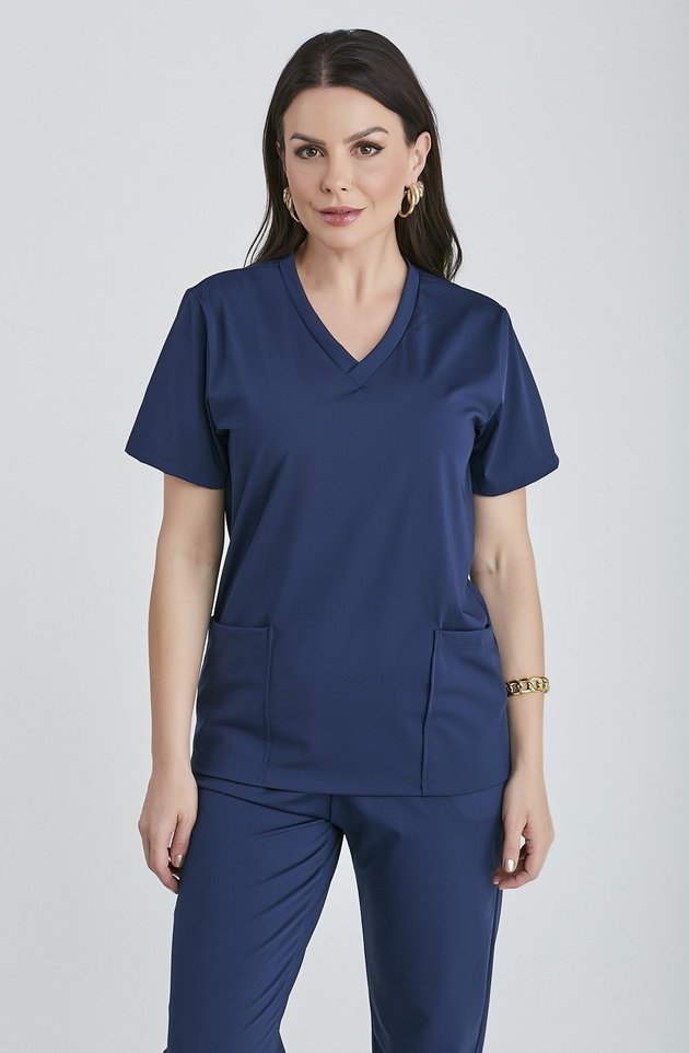 O Scrub Basic Marinho é ideal para profissionais que prezam por leveza e estilo em todas as jornadas. A modelagem confortável com gola V valoriza a silhueta sem abrir mão da mobilidade, enquanto os bolsos frontais trazem funcionalidade à peça. Um conjunto que transmite autoridade com suavidade.