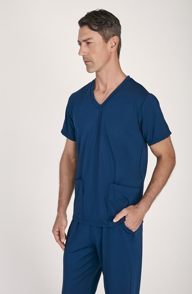 Com modelagem moderna e funcional, o Scrub Masculino Azul foi criado para garantir liberdade de movimento e presença marcante. O design minimalista com gola V e bolsos amplos proporciona praticidade sem abrir mão da elegância.
