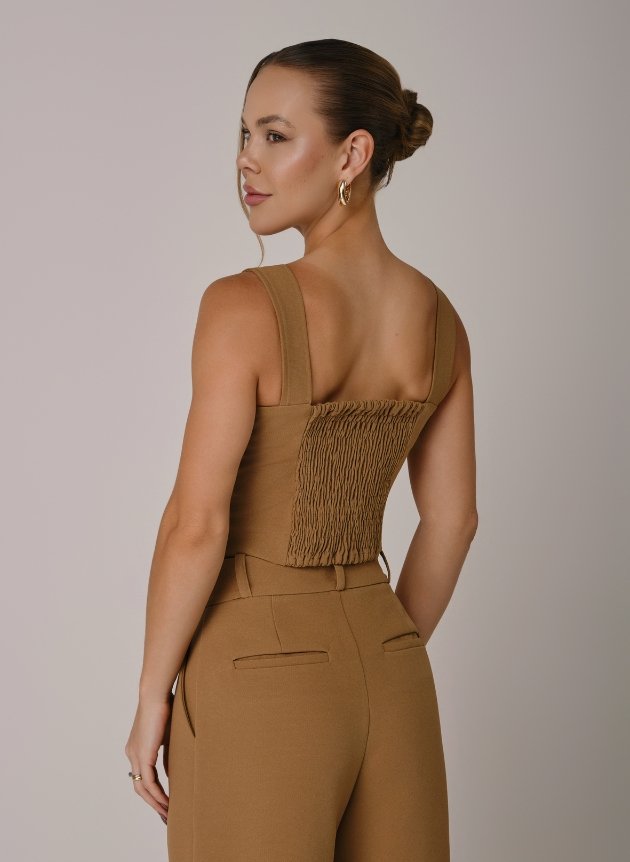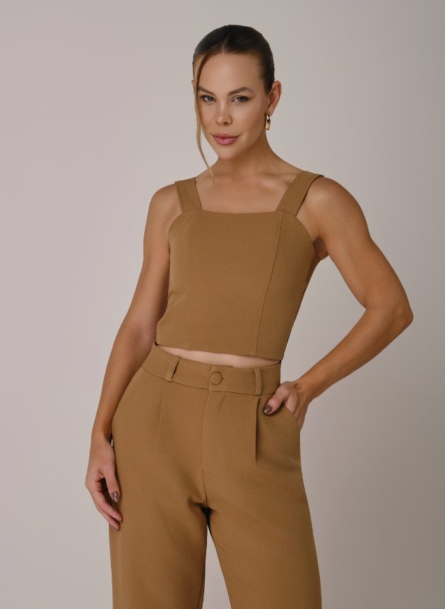O Top Cropped Athena combina design clean e modelagem estruturada, criando um equilíbrio perfeito entre força e feminilidade. Suas alças largas proporcionam conforto e sustentação, enquanto o corte preciso valoriza a silhueta de forma elegante e atemporal. Ideal para composições coordenadas com alfaiataria, transmitindo uma imagem moderna e refinada.